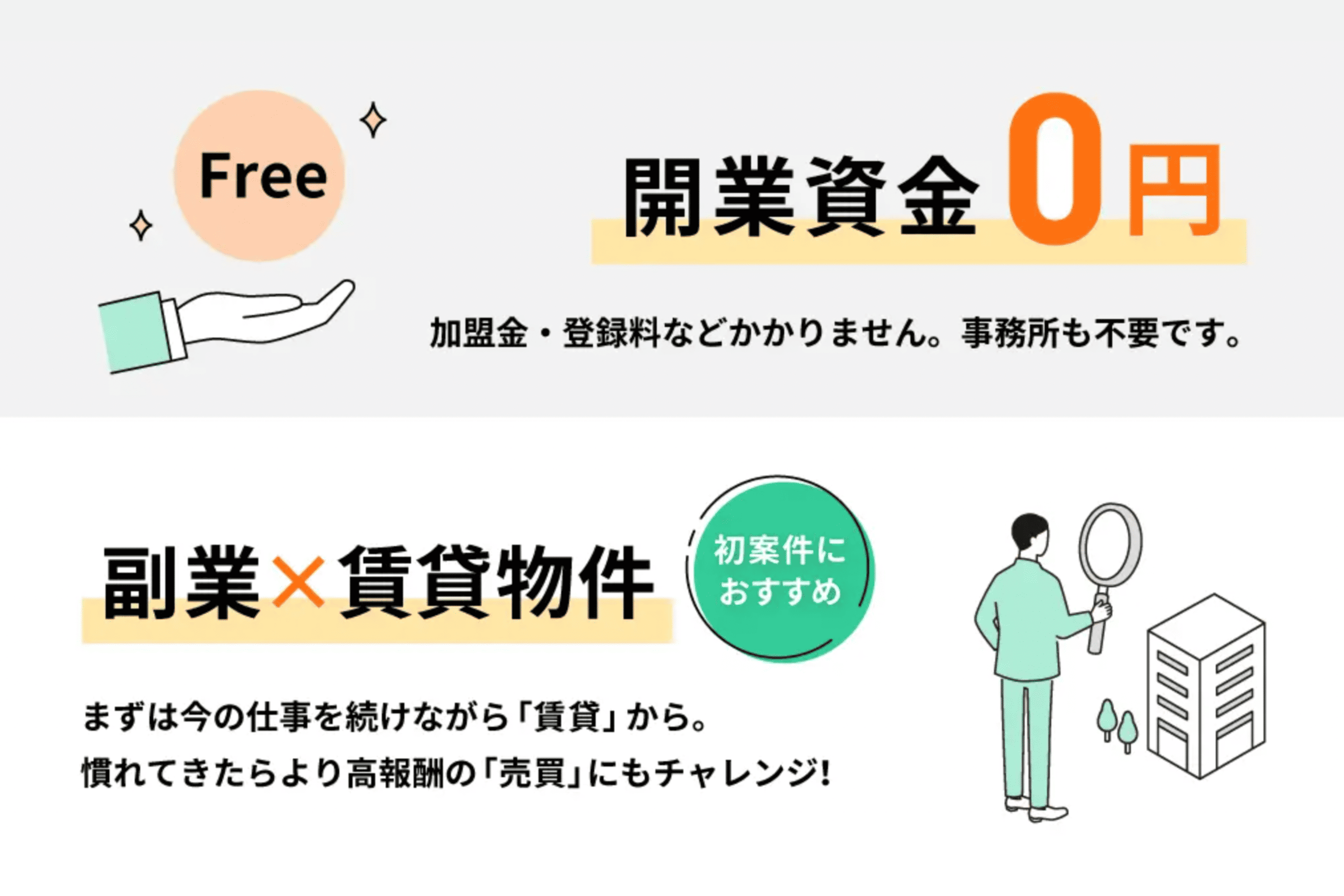 初期費用0円 1人で開業・個人事業 フリーランスで働く 自宅で出来る 無店舗で開業 副業からスタート 未経験からスタート 好きな時間に働ける仕事 週末起業 定年がない働き方 40歳から独立 研修・サポートが充実 高マージン