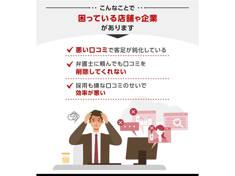 1度悪い口コミを書かれてしまうとなかなか削除できないため、多くの企業・事業主にとって悩みの種となっています。
