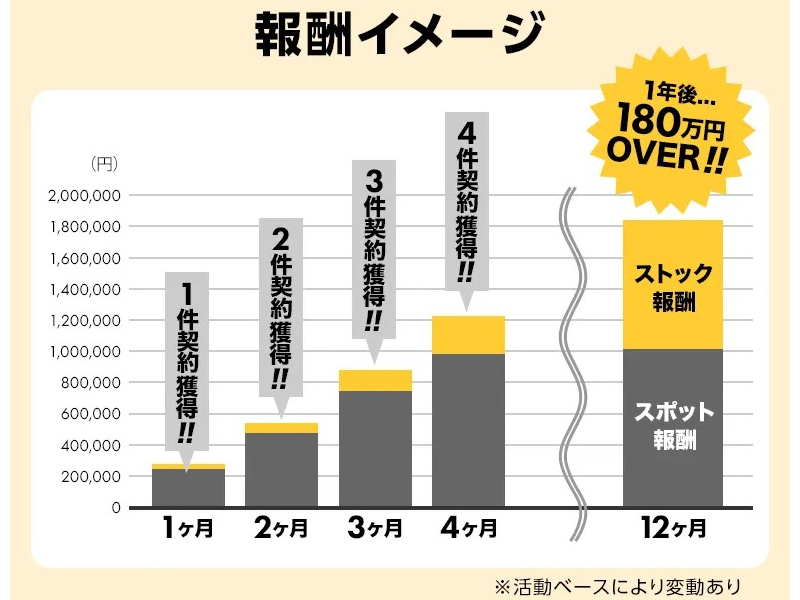 ストック報酬:25,000円×40=1,000,000円