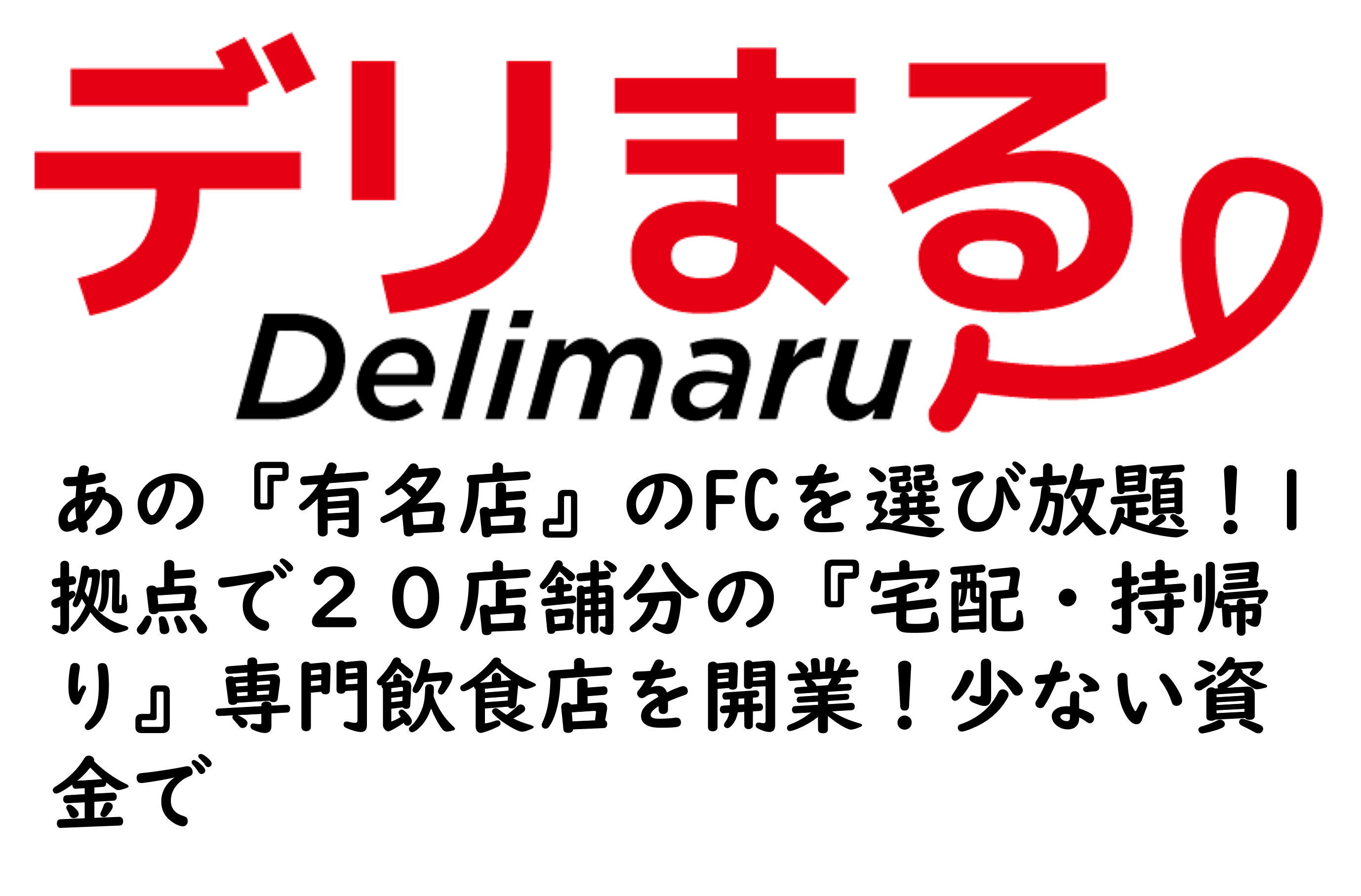 ◎全国の『あの』『有名店』『老舗店』『美味しいお店』のメニューを『1店舗分の出店費用以下』で『15~20店舗分』のメニューを展開する飲食店を展開!『デリバリー』と『テイクアウト』に特化し、『徹底的に仕組み化』をすることにより実現!